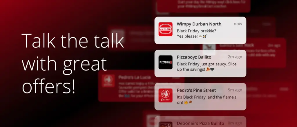 Black Friday is fast, frantic and full of opportunity. But with so many shoppers chasing deals, how do you make sure your QSR stands out amongst the throngs of busy customers? The answer of course, is that you need to speak to them. You need to engage with them. And you can do so effectively through real-time messaging. SMS and push notifications cut through the noise, reaching people exactly when and where they’re ready to order.