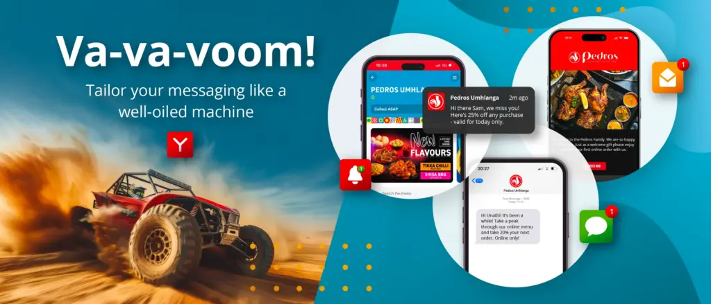 Before purchasing a car, you don’t pay for it, jump in and drive off, right? You take it for a spin first. Test it. See if it meets your expectations. You want to know exactly how it handles and, as we all know, not every car is every driver’s cup of tea. When it comes to connecting with your customers, it’s pretty much the same scenario. One size definitely doesn’t fit all. For example, some people respond instantly to an SMS, others prefer a quick push notification, and many enjoy opening an email with tasty news and special deals. With YUMBI Engage, you can easily test which channels work best for your audience – helping you send the right message, to the right people, at the right time.